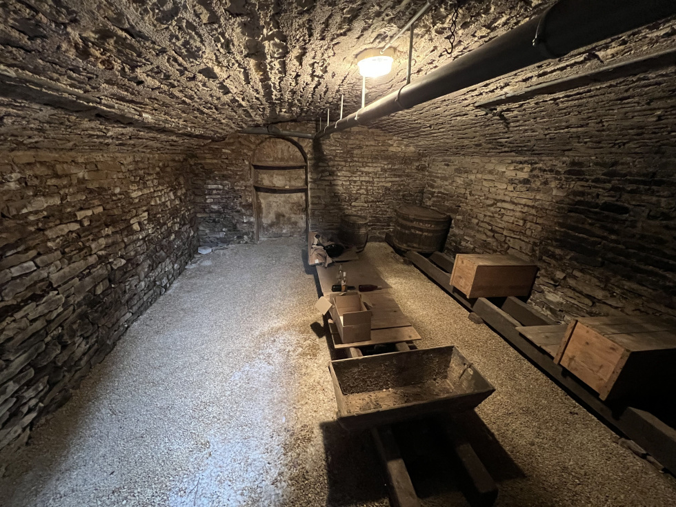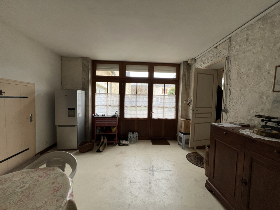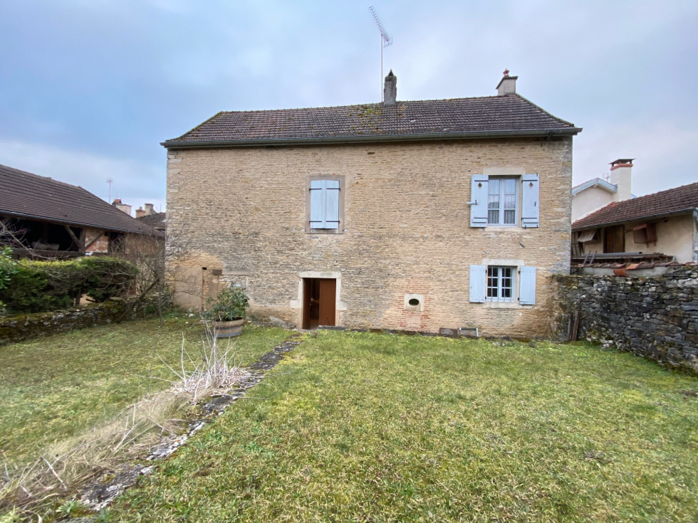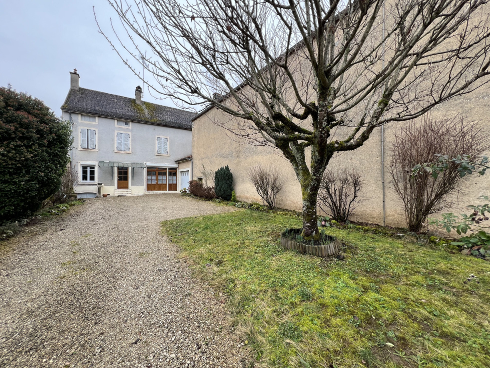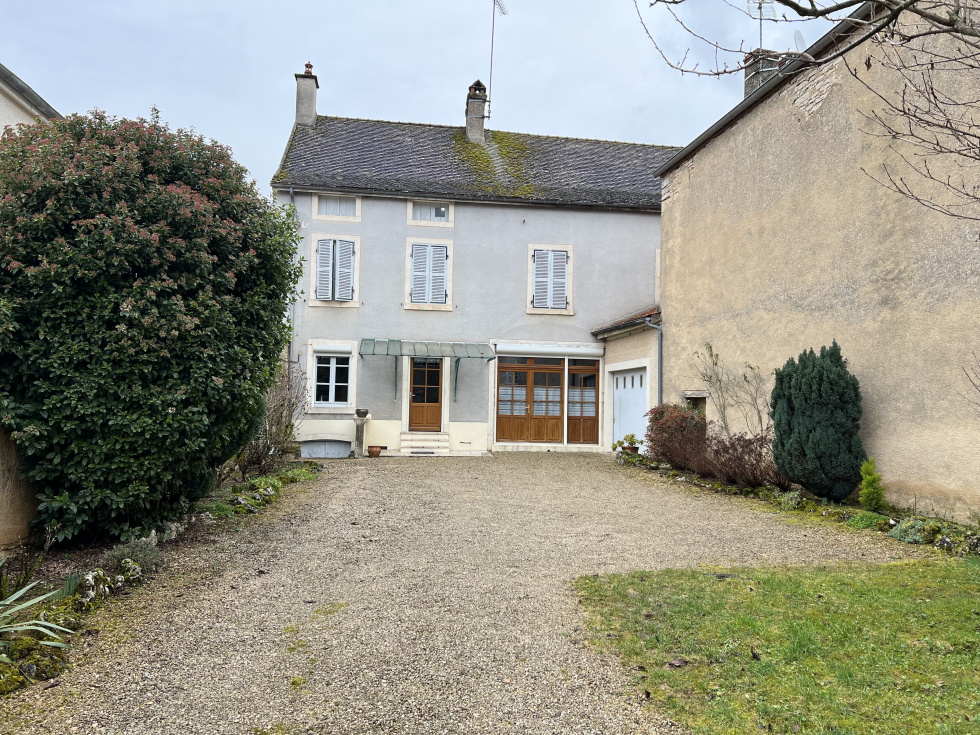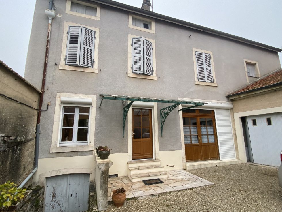 Au centre d'une village viticole avec commerces, maison en pierre de 5 pièces principales. Cellier, garage et cave voûtée. Cour et jardin clos de murs.