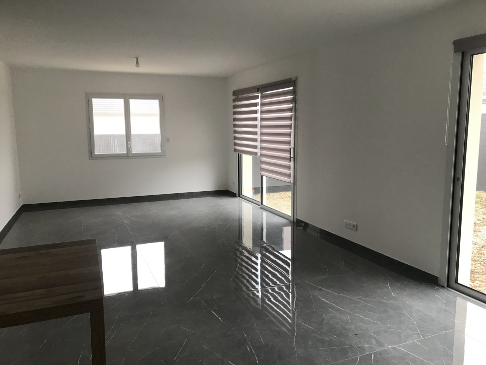 Proche Beaune, dans un agréable village, Maison de plain-pied d'un séjour / salon avec cuisine équipée U.S., trois chambres, une salle de bain et W.C. Garage. Jardin clos de 250m² environ.